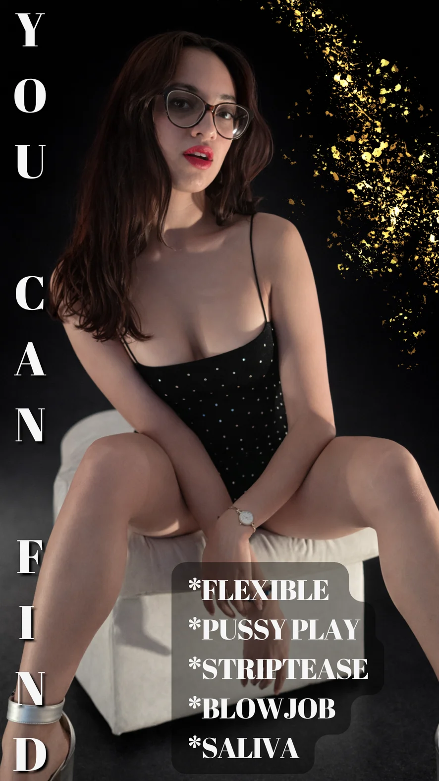 Doggy style, Smiskning, Erotisk dans, Kameltå, Blottning, Högklackat, Topless, Twerk, Fingrar, Snuskprat, Striptease, Avsugning, Avrunkning, Cowgirl, Hårdporr, Fotjobb, Orgasm, Onani, Rollspel, Deepthroat, Fot Fetisch, Dildo eller Vibrator, Cumshot