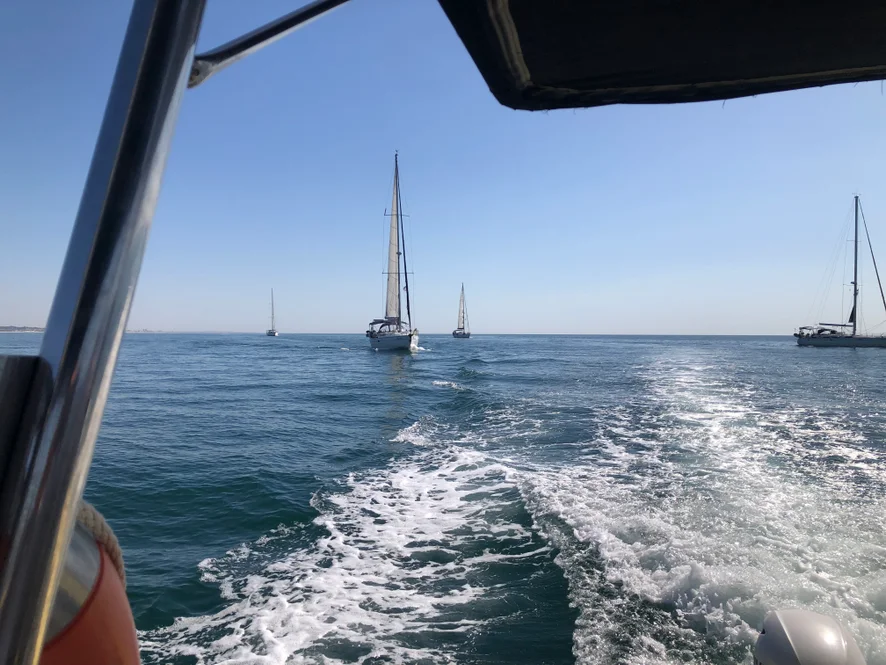 Navegando entre Veleros al Aterdecer.