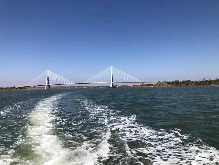 Dejando por la popa un Puente Internacional mientras navego a puerto base.
